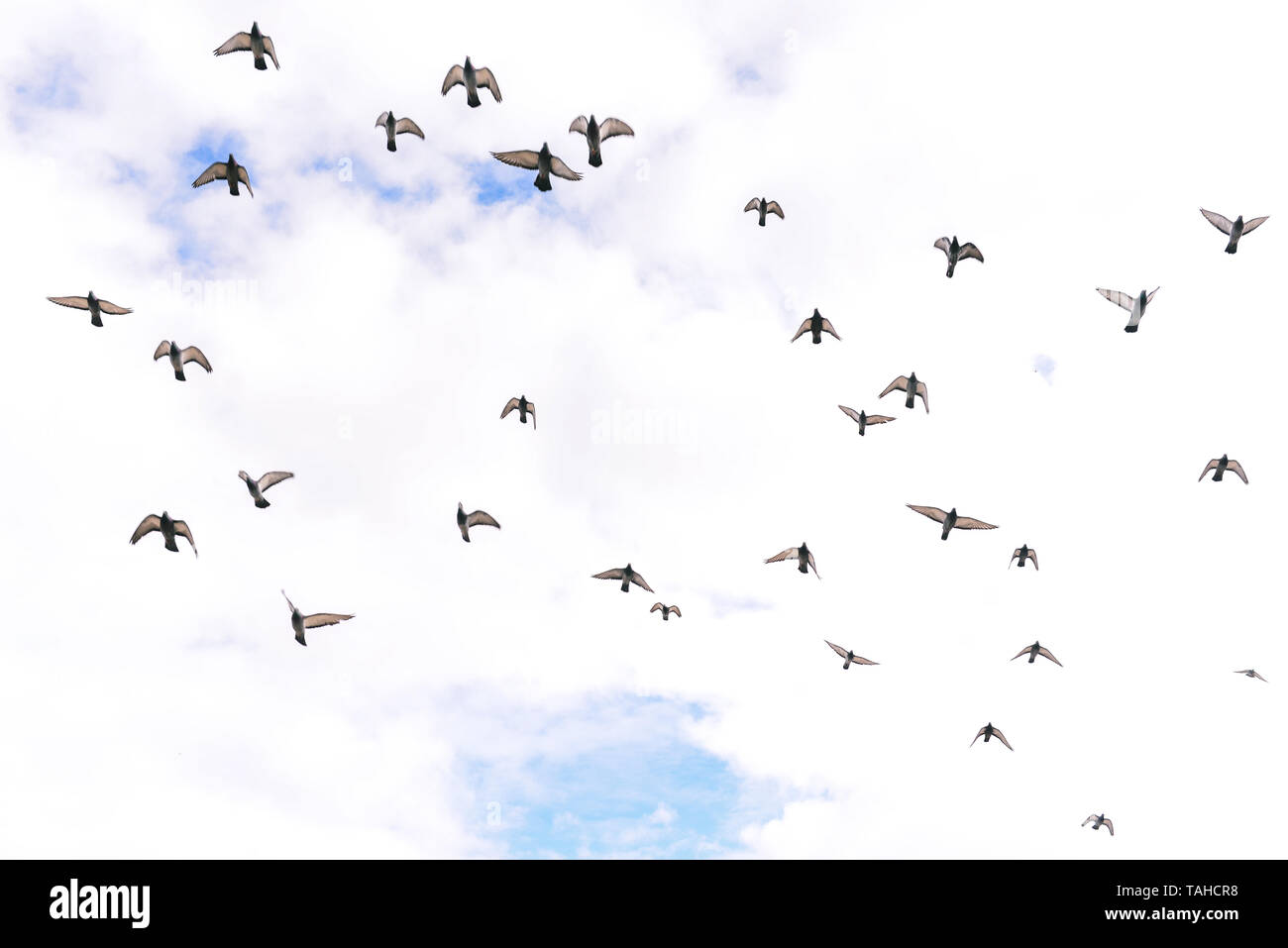 Las Aves En El Cielo Volando Palomas En El Fondo De Nubes Muchas