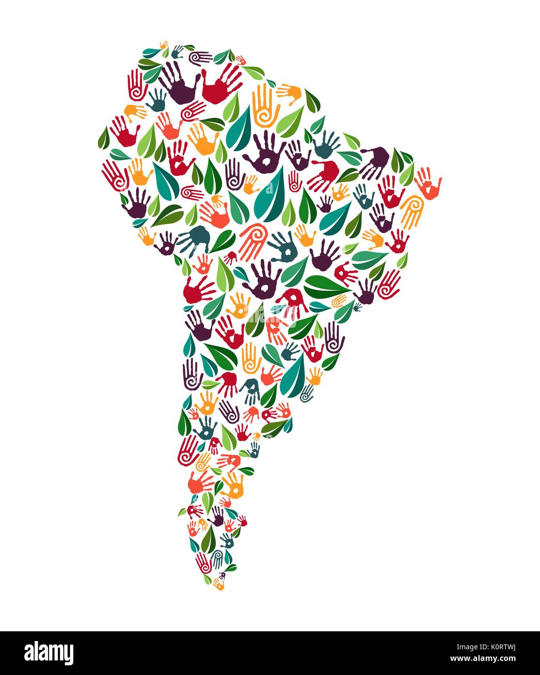 Forma Del Sur Del Continente Americano Con Hojas Verdes Y Huellas